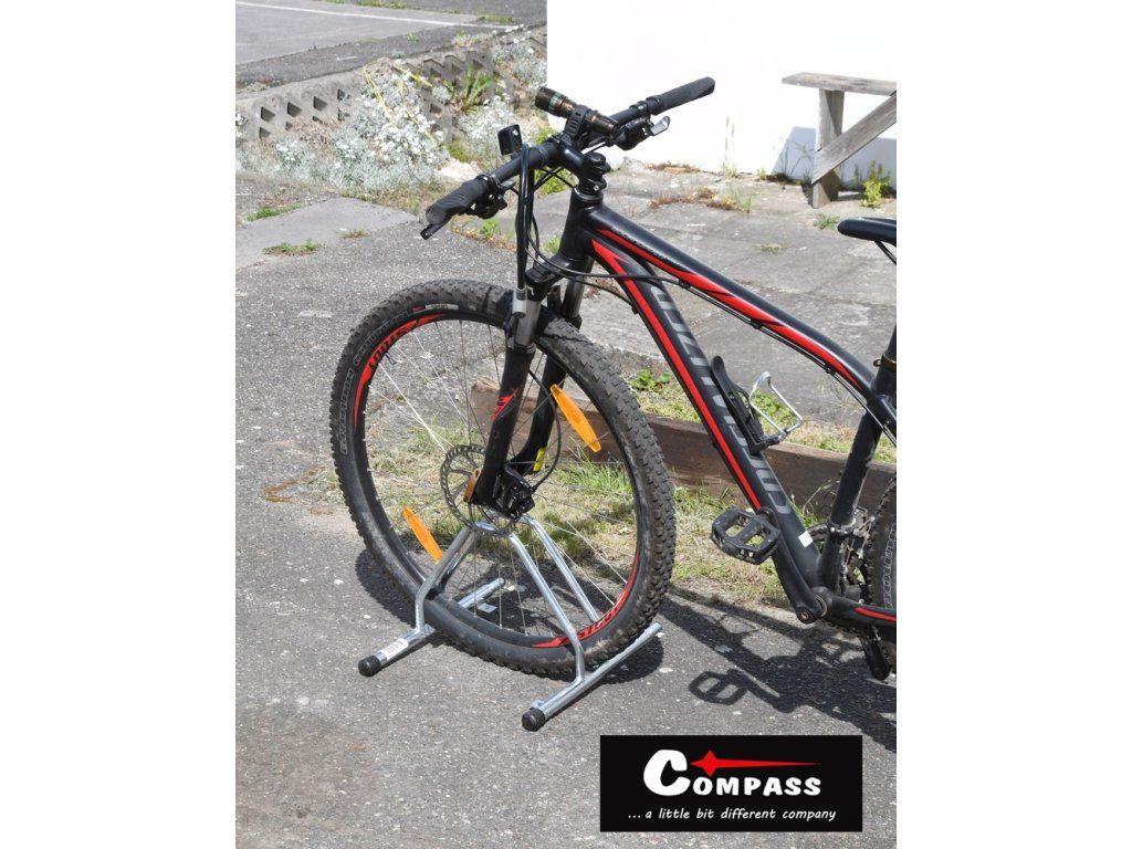 Praktický stojan na jízdní kolo, vhodný k připevnění do země pomocí vrutů (nejsou součástí).
