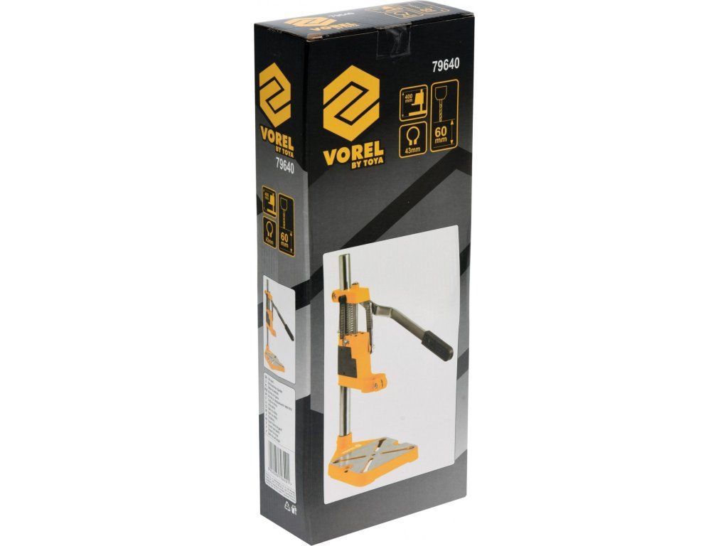 Stojan na vrtačku mění vrtačku na multifunkční a praktické zařízení. Stojan umožňuje vertikální změnu polohy připojené vrtačky, díky níž snižuje pravděpodobnost lomu nebo poškození vrtáku.