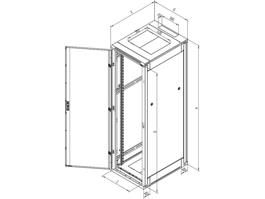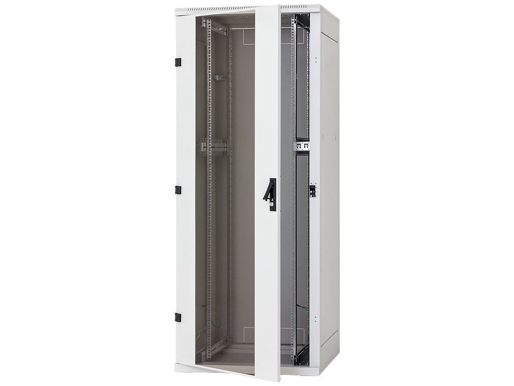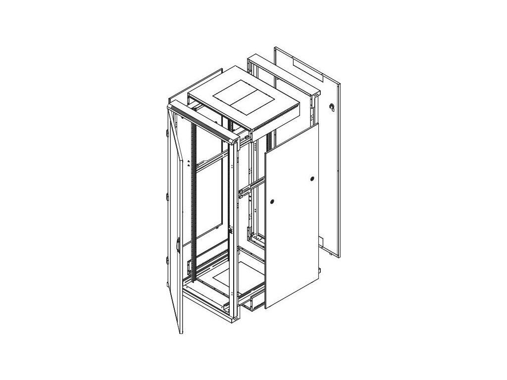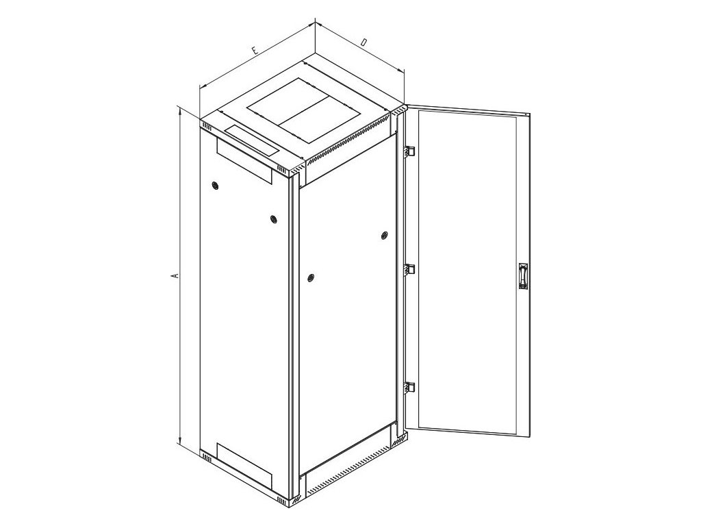 – Dveře jednokřídlé nebo dvoukřídlé ve variantách celoplechové, perforované (80 % a 86 % prostupnost) nebo prosklené s bezpečnostním tvrzeným sklem 4mm. Mohou být na přední i zadní straně rozvaděče.