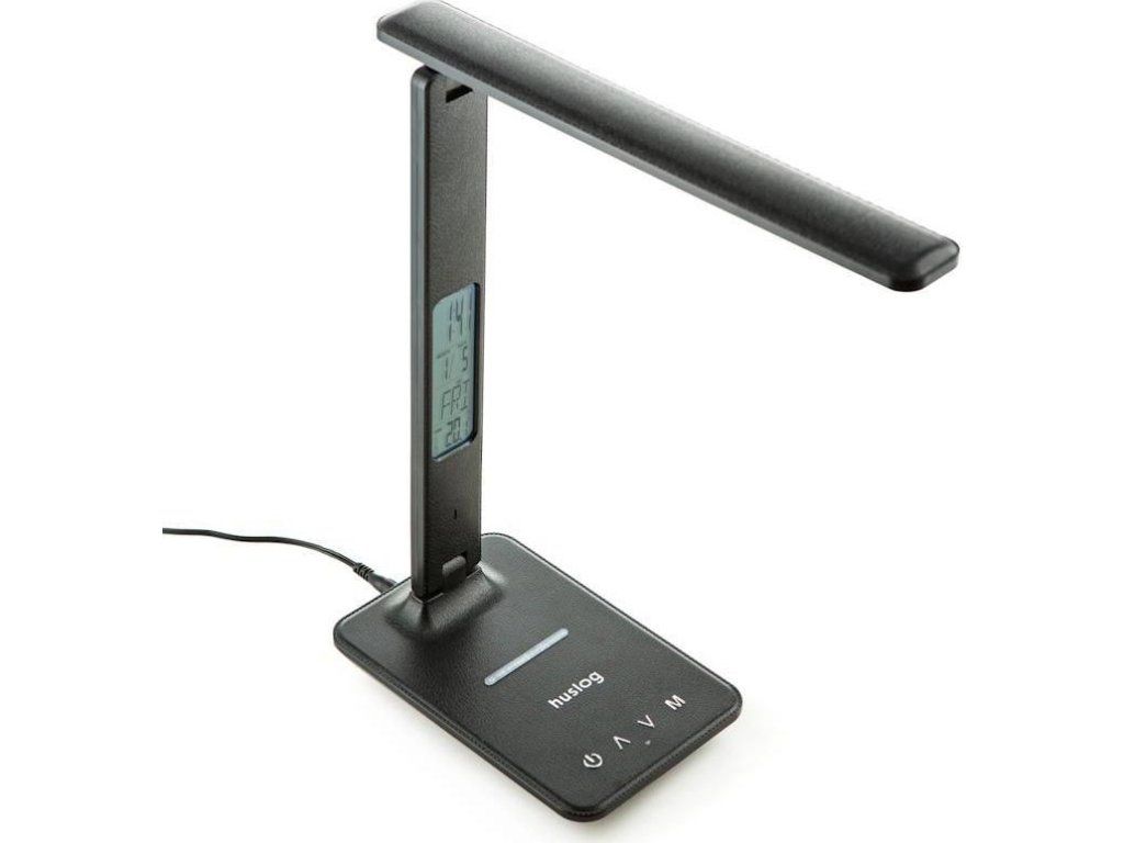 Stolní LED lampička Huslog černá s displejem a bezdrátovou nabíječkou