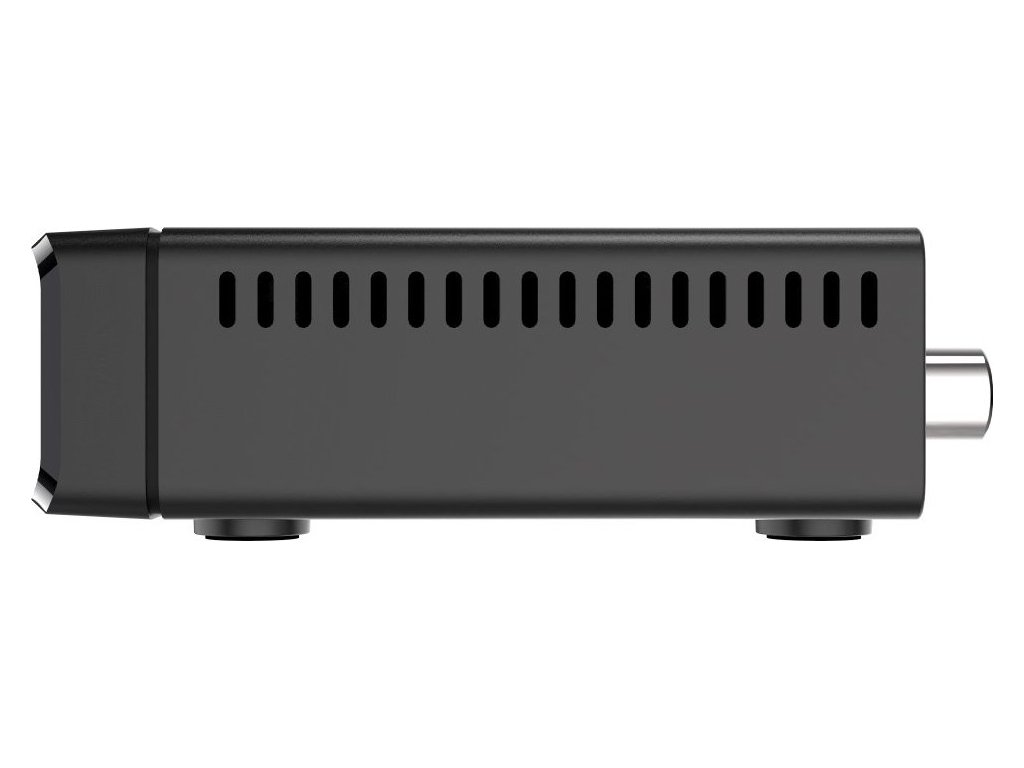 Kvalitně provedený set-top-box s displejem určený pro příjem pozemního televizního vysílání DVB-T2 s podporou dekódování H.265. Disponuje rozlišením Full HD a pamětí na 700 stanic. Potěší také možnost vytvořit si vlastní seznam oblíbených stanic, rodičovský zámek, automatické ladění či funkce EPG. Pro záznam pořadů a následné přehrávání skrze USB média je přítomen USB port. Součástí balení je dálkový ovládač.
