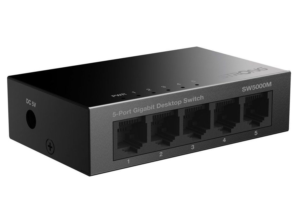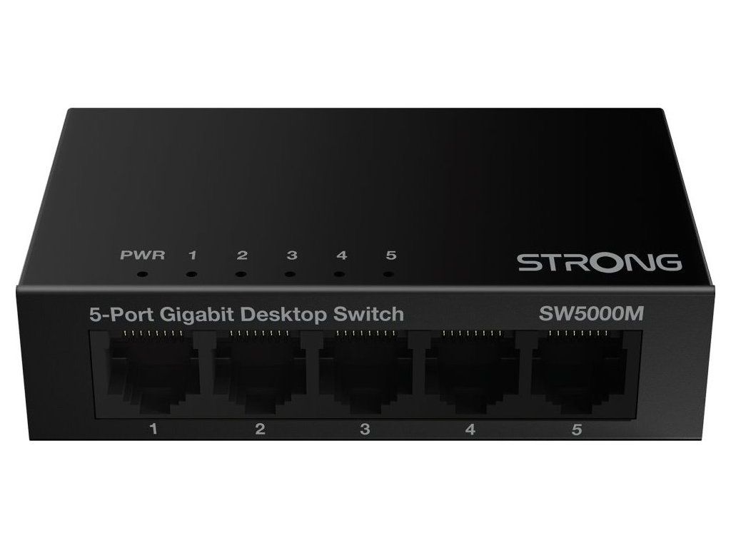 STRONG switch SW5000M/ 5x port Gigabit RJ45/ 10/100/1000 Mb/s/ 10 Gb/s/ 802.3i/u/ab/ kovové šasi/ černý