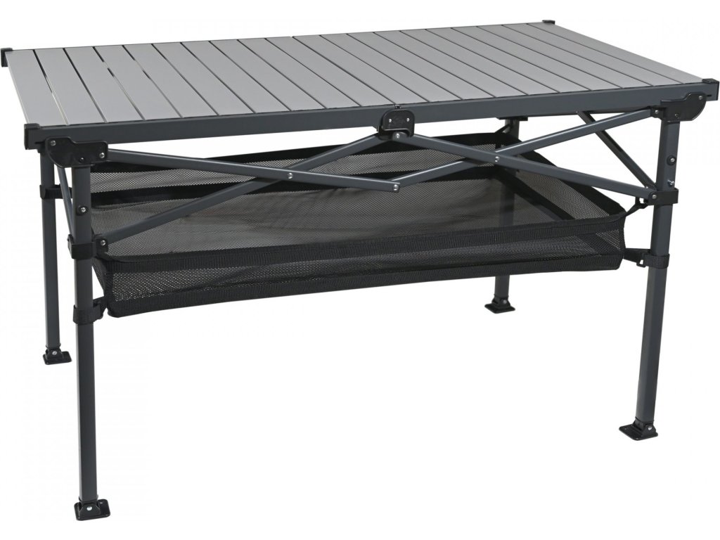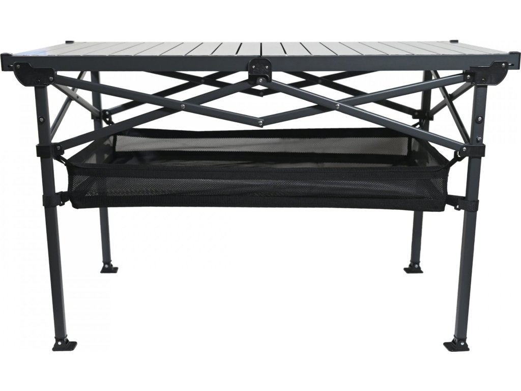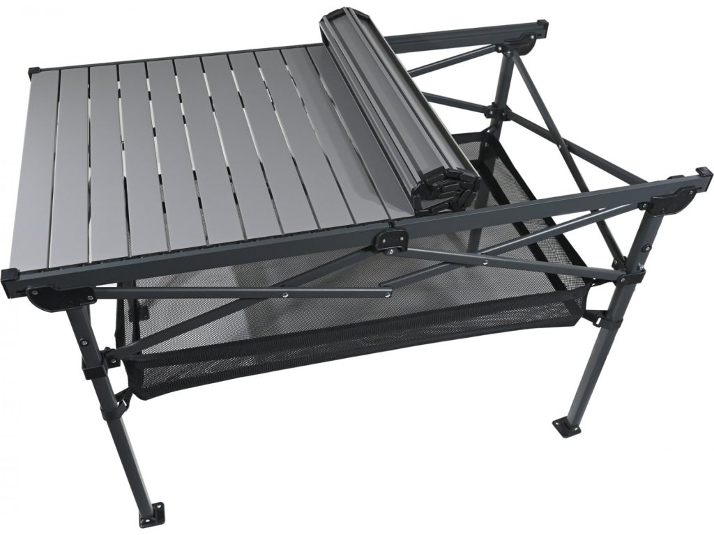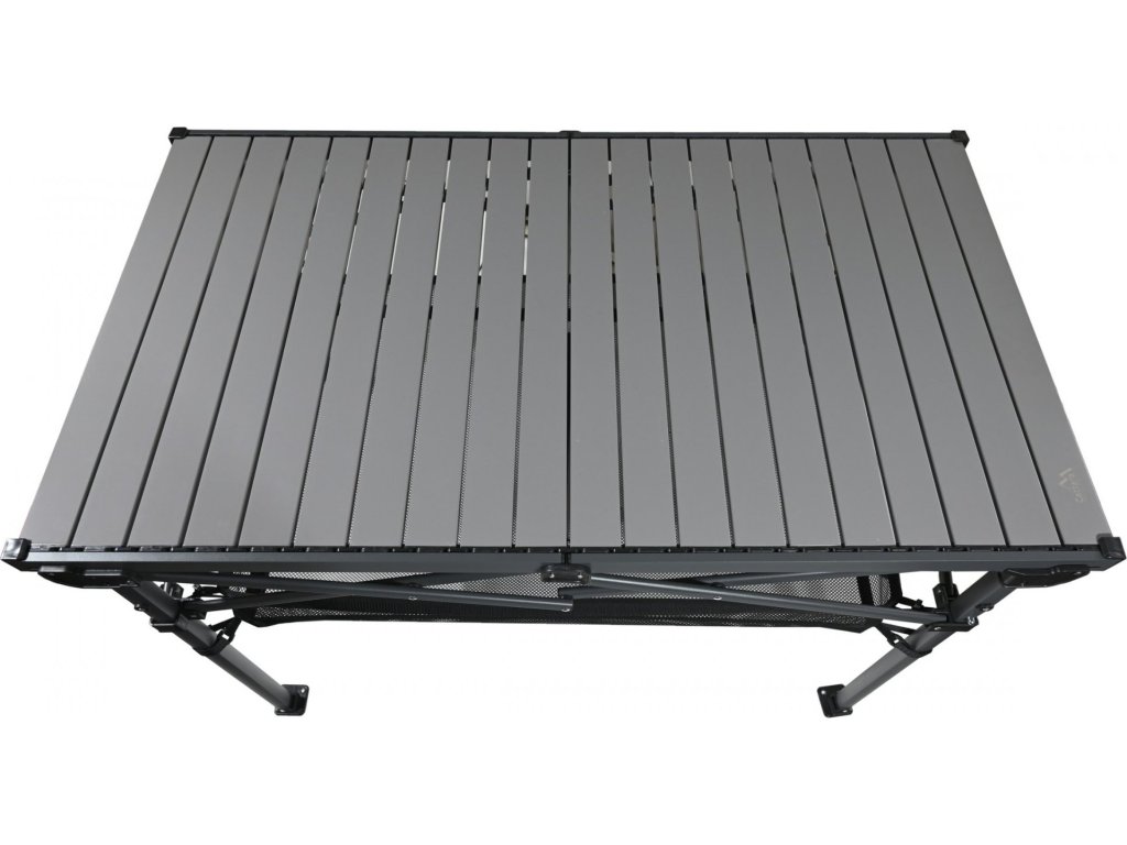 Stůl disponuje lamelovou hliníkovou deskou o rozměrech 118 x 70 cm ve výšce 70 cm, ta poskytuje dostatek prostoru pro přípravu a servírování jídel. S maximální nosností až 100 kg je stůl dostatečně pevný pro veškeré kempingové potřeby a potraviny.