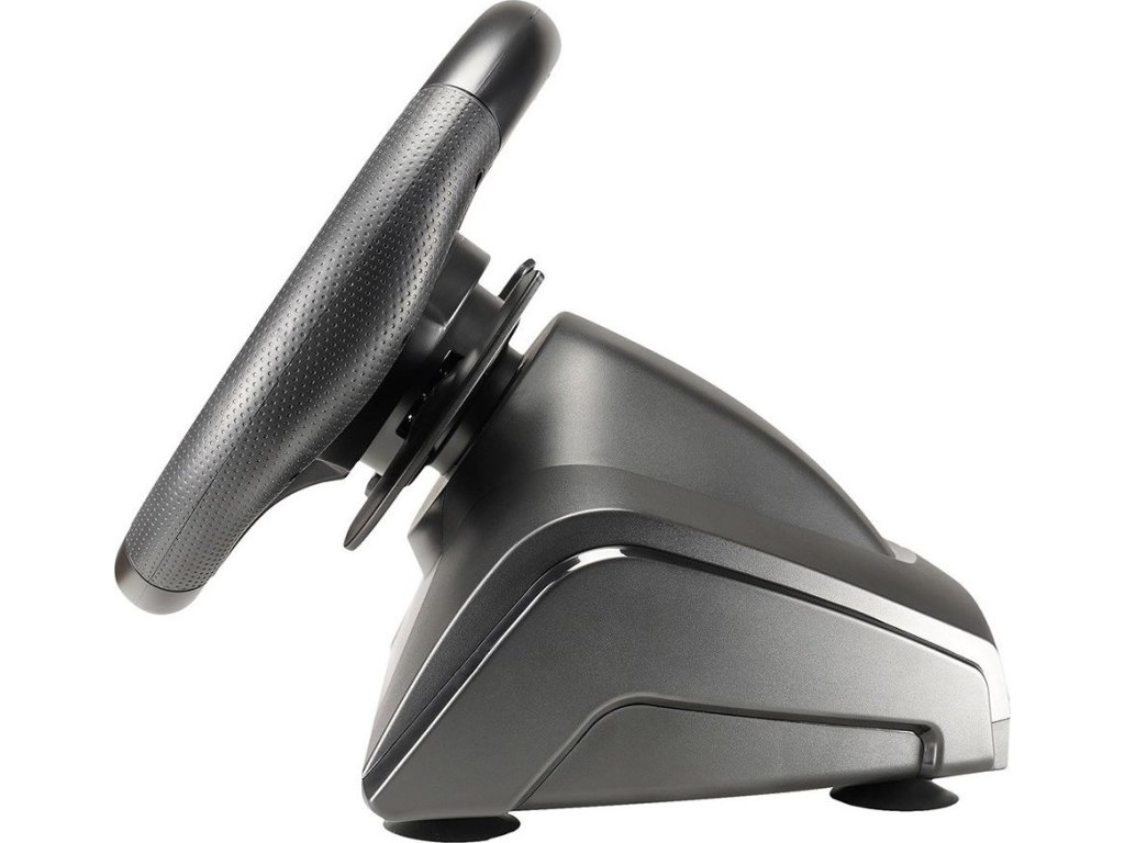 Dvojice vibračních motorů reaguje na všechny nerovnosti, na které během závodů najedete. Vše doplňuje systém pedálů, s nimiž získáte komplexní pocit z jízdy. Citlivost volantu lze nastavit na 3 úrovních, díky čemuž se přizpůsobí vašemu hernímu stylu nebo typu závodů. Na spodní straně je základna vybavena přísavkami, díky čemuž jej stabilně upevníte na rovném povrchu.
