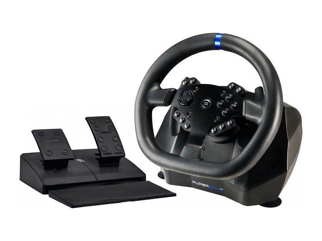 Volant s pedály SUPERDRIVE SV950 kompatibilní s herními konzolemi PlayStation (PS4), Xbox (One, X/S) a počítači. Volant se vyznačuje na pohled elegantním designem a díky zvolené struktuře se pohodlně a pevně drží. Dvojice vibračních motorů reaguje na všechny nerovnosti, na které během závodů najedete. Vše doplňuje systém pedálů, s nimiž získáte komplexní pocit z jízdy.