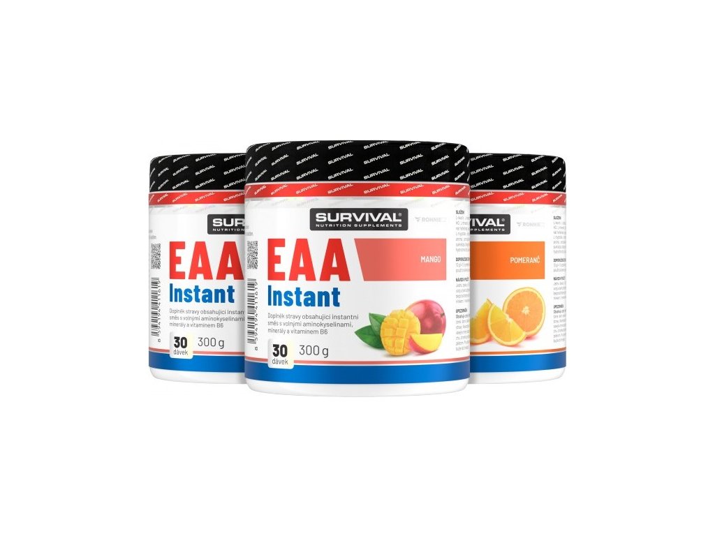 Nové EAA Instant jsou komplexem všech osmi esenciálních aminokyselin ve volných formách. Volné aminokyseliny jsou nejlepší možnou volbou pro nejnáročnější uživatele na použití bezprostředně po tréninku, kdy se ke svalům dokážou dostat výrazně rychleji než aminokyseliny z proteinového suplementu. EAA Instant obsahují velmi vysoký podíl BCAA v poměru 2:1:1 a vyvážené množství všech ostatních esenciálních aminokyselin.
