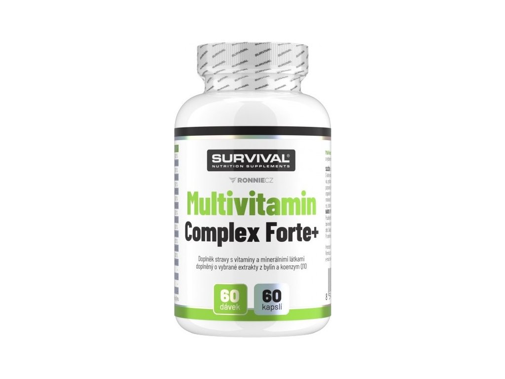 V případě, že pravidelně užíváte multivitamínový přípravek, měli byste vědět, že nárazově podané velké množství vitamínů a minerálních látek nedokáže lidský organismus vstřebat a přebytek prostě a jednoduše vyloučí - tzn. užíváte-li doplňky s obsahem megadávek těchto látek, Vaše tělo s velkou pravděpodobností velkou část Vaší (mnohdy finančně nezanedbatelné) investice do zdraví vůbec nevyužije. Proto Survival vytvořil Multivitamin Complex Forte - dokonale vyvážený suplement, který v každé kapsli obsahuje přesně 100 % doporučené denní dávky důležitých vitamínů a vybraných minerálních látek významných (nejen) pro sportovce. Každá kapsle Multivitamin Complex Forte tak umožní dodat Vašemu tělu jednak to, co skutečně potřebuje, a zároveň v dávkách, jaké má šanci reálně využít. Pocítíte-li přesto (např. kvůli náročné práci, nachlazení a podobně) potřebu dávkování zvýšit, i v případě použití více kapslí v různých denních dobách dáte tělu (právě s ohledem na použití v jiný čas) dostatek prostoru přijaté látky využít. Celé využitelnosti také přispívají obsažené minerální látky ve vysoce využitelných chelátových formách!