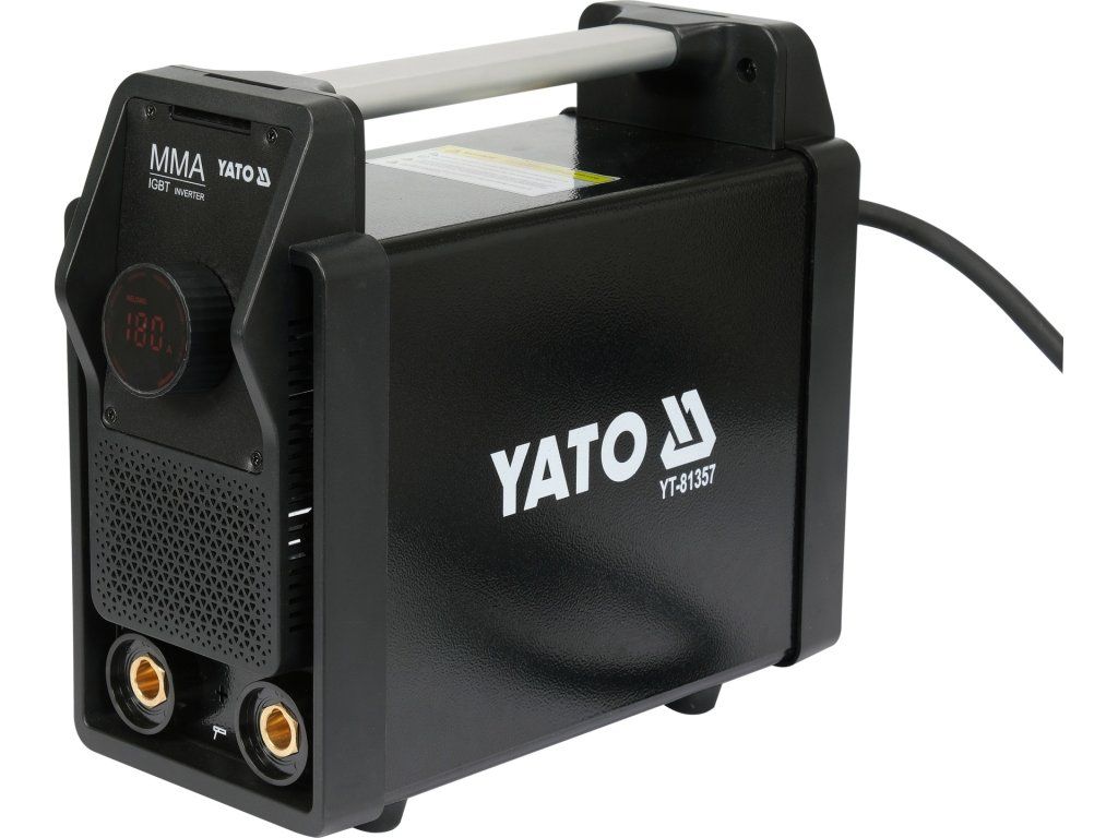 Funkce: Real Hot start - Když je elektroda umístěna na svařovaný materiál, svářeč na zlomek sekundy zvýší svařovací proud, což značně usnadňuje zapálení oblouku. Model YT-81357 umožňuje upravit funkci v rozsahu 0-10% a dobu jeho provozu od 0,0 do 1,0s. Zkušený svářeč využije možnosti nastavení pro práci s celulózovými a alkalickými elektrodami. Real Arc force - Reguluje dynamiku oblouku v závislosti na vzdálenosti elektrody od svařovaného prvku. Víceúlohový mikroprocesor použitý v YT-81357 zkoumá parametry svařování přibližně dvě stě milionůkrát za sekundu. Výsledky měření jsou analyzovány v reálném čase. Poté řízením tranzistorů rychlostí až 70 tisíckrát za sekundu zvyšuje nebo snižuje svařovací proud. Vše se děje ve zlomku vteřiny a cílem těchto činností je získat nejkvalitnější svařovací zdroj pro dané nastavení proudu. Model YT-81357 má nastavitelné parametry této funkce v rozsahu 0-10%. Zkušený svářeč využije možnosti nastavení pro práci s celulózovými a alkalickými elektrodami. Antistick - Odpojí svařovací proud při zkratu elektrody, což umožňuje oddělení elektrody od svařovaného materiálu. VRD - Funkce snižuje napětí naprázdno z přibližně 60 V na úroveň, která je pro člověka bezpečná. Navzdory významnému dopadu na bezpečnost je tato funkce uživateli často deaktivována. Důvodem takového jednání jsou problémy s úderem do oblouku, zejména u lidí s malými zkušenostmi. Většina invertorových svářeček měří výstupní proud pomocí analogových senzorů, což ve zkratce prodlužuje dobu odezvy a následně ztěžuje zapálení oblouku. Mikroprocesor v YT-81357 to dělá jinak. V obvodu svařovacího proudu generuje tvar vlny o frekvenci přibližně 200 MHz. V reálném čase zkoumá deformace tvaru vlny, které se mění v závislosti na dané fázi svařování. Ve zlomku vteřiny je detekován okamžik, kdy se elektroda dotkne svařovaného prvku, následně se vypne funkce VRD a zároveň začne fungovat HOT START. Problém se zapálením oblouku nenastává. Model YT-81357 má funkci VRD trvale povolenou. Ochrana proti přetížení a přehřátí (ventilátor na vyžádání) - Mikroprocesor v YT-81355 kontroluje teplotu kritických součástí v reálném čase. V závislosti na teplotě nejprve řídí otáčky ventilátoru, ale když teplota dosáhne příliš vysokých hodnot, mikroprocesor plynule sníží výstupní proud, což umožní vypálení elektrody nebo řízené ukončení svaru. Okamžik přehřátí znamená u většiny svářeček na trhu okamžité vypnutí svařovacího proudu, což má často za následek nutnost provedení mechanických korekcí na svařovaných prvcích. Tento problém se na YT-81357 nevyskytuje.| Technická data | |