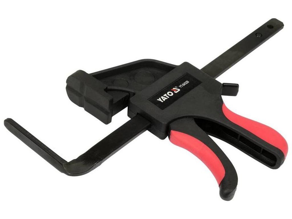Jednoruční rychloupínací svěrka pro upevnění do vodících lišt (kolejnic) na pracovním stole.