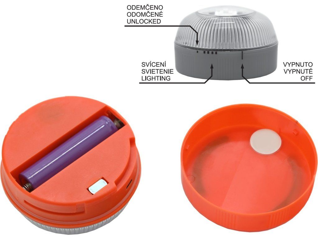 Tělo svítilny je vyrobeno z plastu a nabízí stupeň krytí IP54. Pomocí silného magnetu lze výstražné světlo rychle přichytit na karoserii vozidla. Na krytu i těle svítilny jsou značky poloh pro snadné ovládání. Zapnutí lze provést pootočením do polohy svícení, případně lze aktivovat přiložením na kovový povrch díky magnetu. Režimy svícení se střídají postupně při každé další aktivaci.