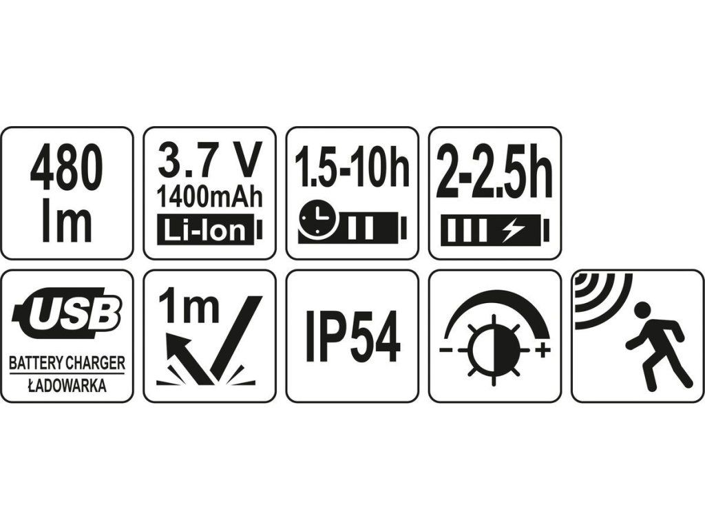 Velmi silná a funkční čelovka Yato s plynule nastavitelným světlem až 480lm. Čtyři provozní režimy umožňují přizpůsobit osvětlení aktivitám a úrovni nabití baterie. Vestavěný pohybový senzor umožňuje zapínat a vypínat lampu mávnutím ruky. Čelovka má navíc řadu vymožeností - nastavitelný úhel svícení, odnímatelné z opasku, magnetickou základnu a indikátor nabití baterie.