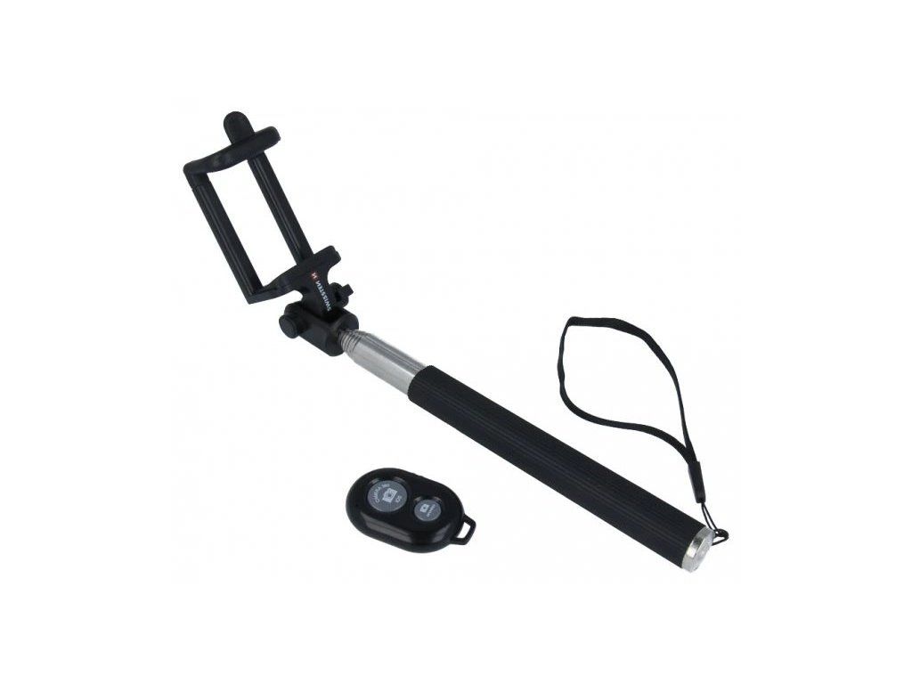 Selfie tyč pro telefony s šířkou až 85 mm. Tuto selfie tyč oceníte nejen při pořizování oblíbených selfie fotografií, ale také při videohovorech a dalších situacích. Rameno lze prodloužit až na 97 cm. Díky Bluetooth ovladači je ovládání spouště snadné a praktické. Je kompatibilní s telefony s operačním systémem Android i iOS. Součástí balení je praktické silikonové pouzdro. Pogumovaná rukojeť zabrání prokluzování v ruce.