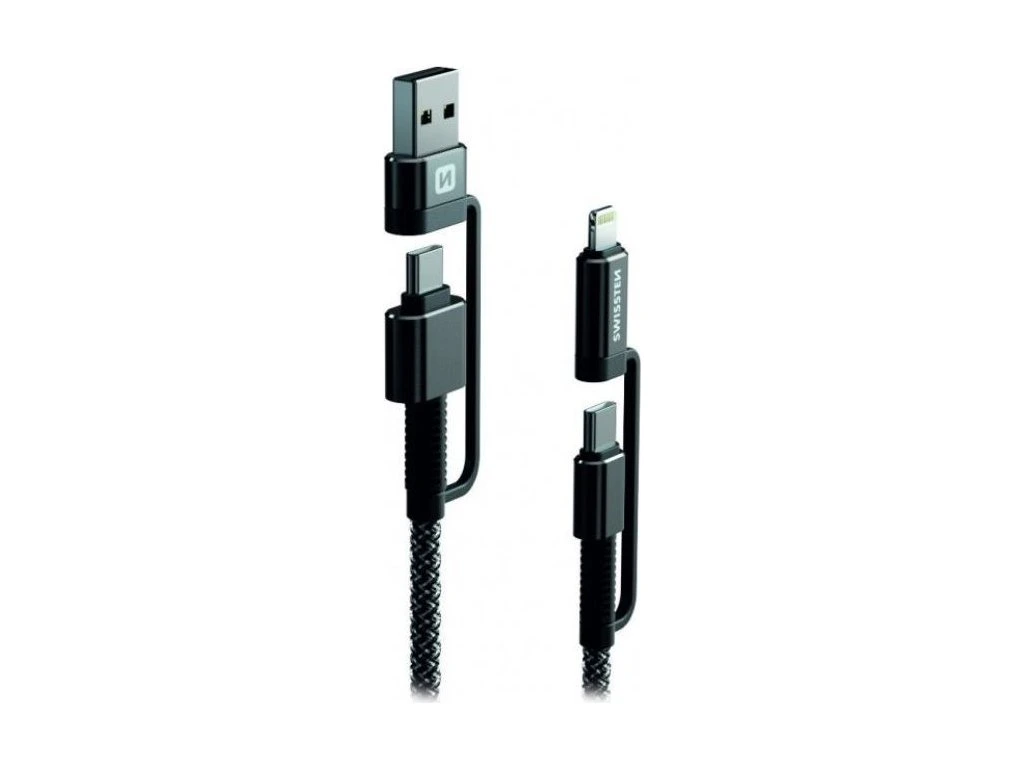 Swissten Datový kabel KEVLAR 4in1 3A 1,5 M ANTRACIT