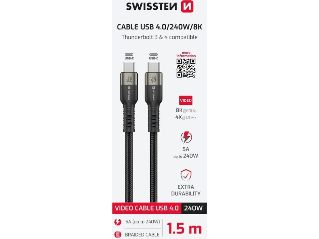 SWISSTEN USB-C 4.0 240 W 8K 1,5 m černý