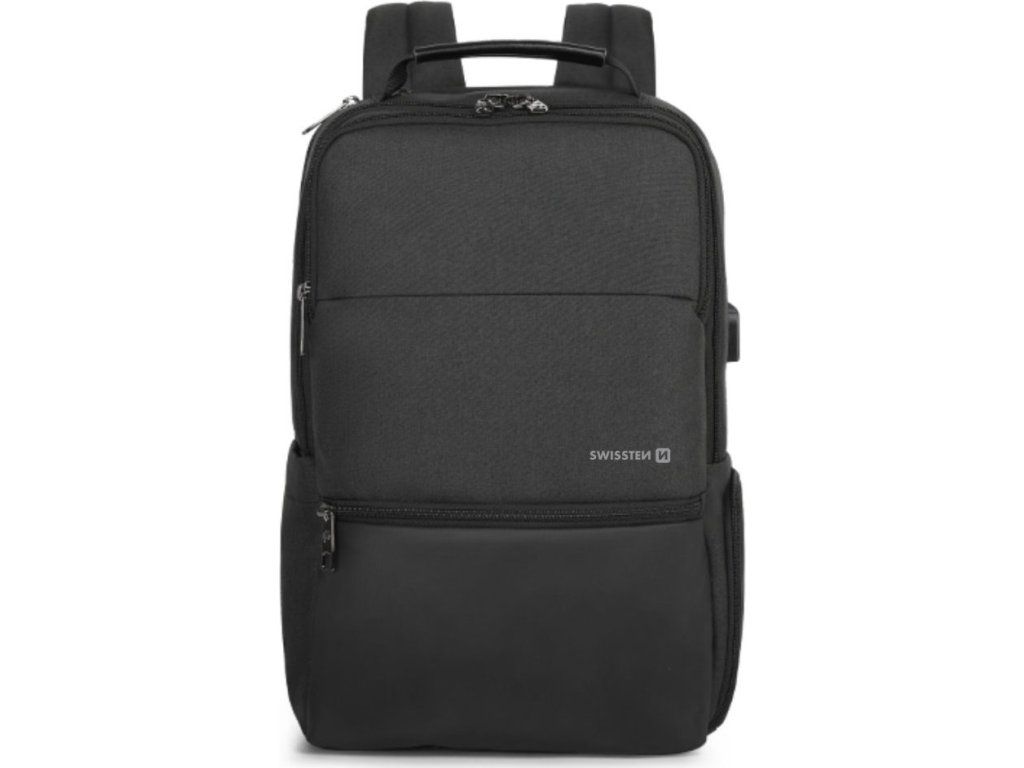 SWISSTEN Laptop Backpack 15,6"Batoh o objemu 19 litrů pro notebook do úhlopříčky 15,6" vyrobený z voděodolné tkaniny nabízí především praktičnost a pohodlí při cestování. Polstrovaný interiér zajišťuje dostatečnou ochranu notebooku, jakož i příslušenství a dokumentů. Pro vysoký komfort je batoh vybaven polstrováním zad a nastavitelnými popruhy. Zajisté potěší také USB výstup pro dobíjení smartphonu.