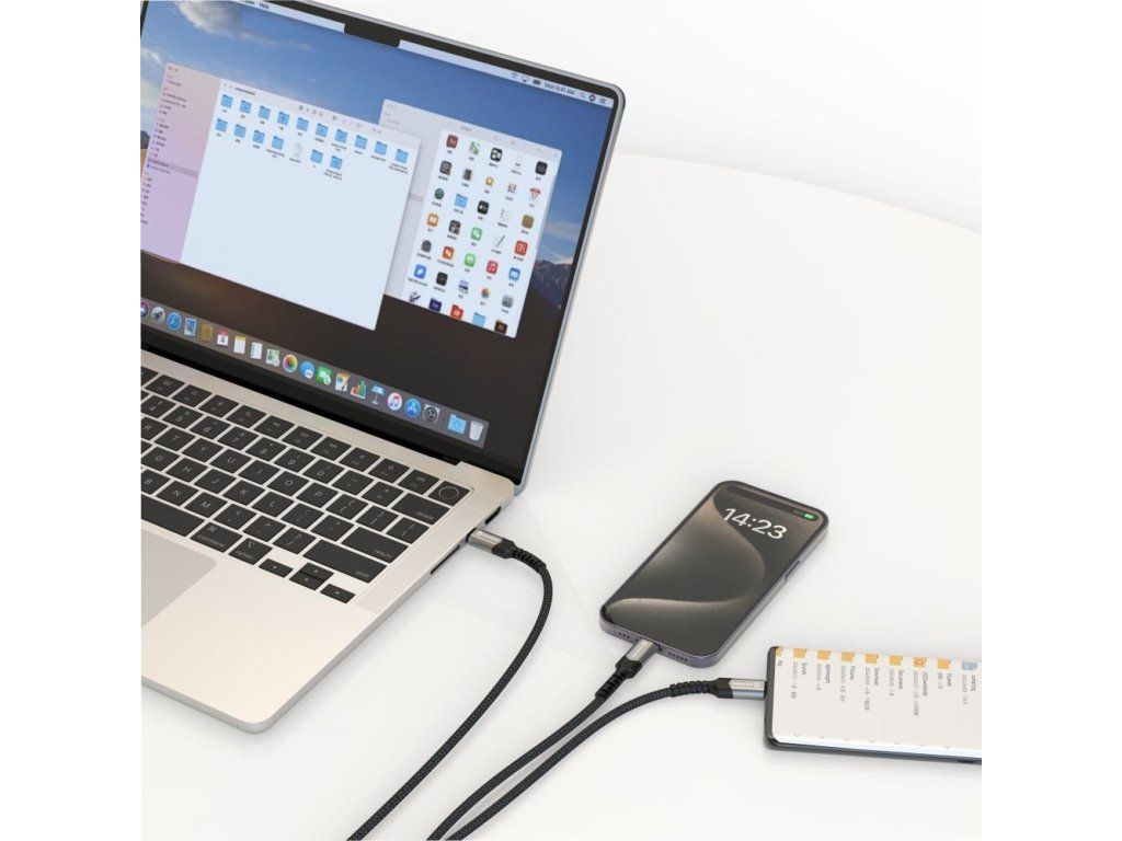 Díky kombinaci USB-C a Lightning konektorů je kabel univerzálním řešením pro uživatele s různými zařízeními. Můžete současně nabíjet iPhone a MacBook nebo iPad a Android telefon.