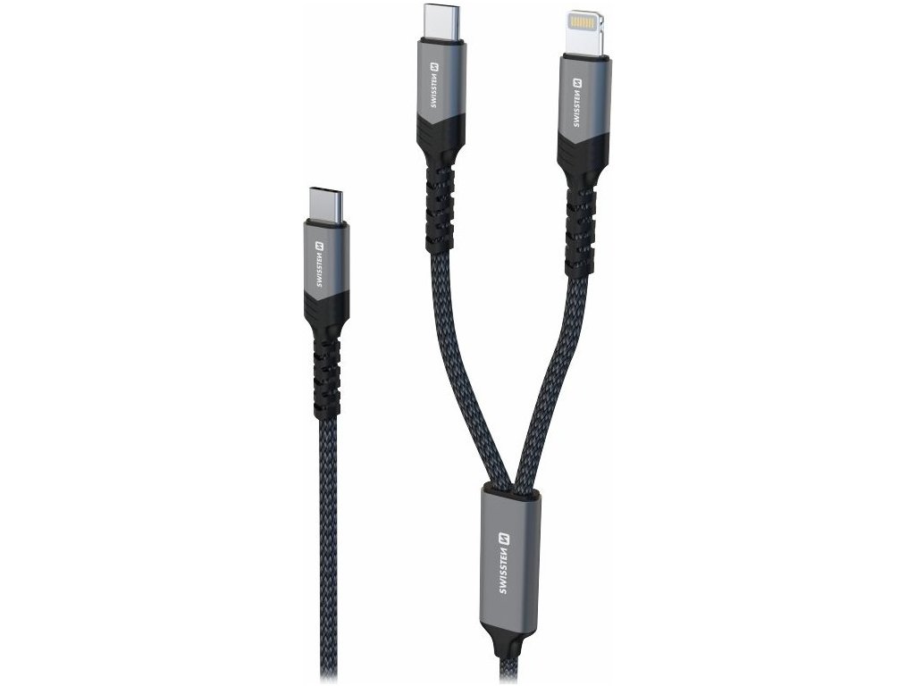 SWISSTEN 2 v 1 USB-C na USB-C + Lightning 1,5 m černý