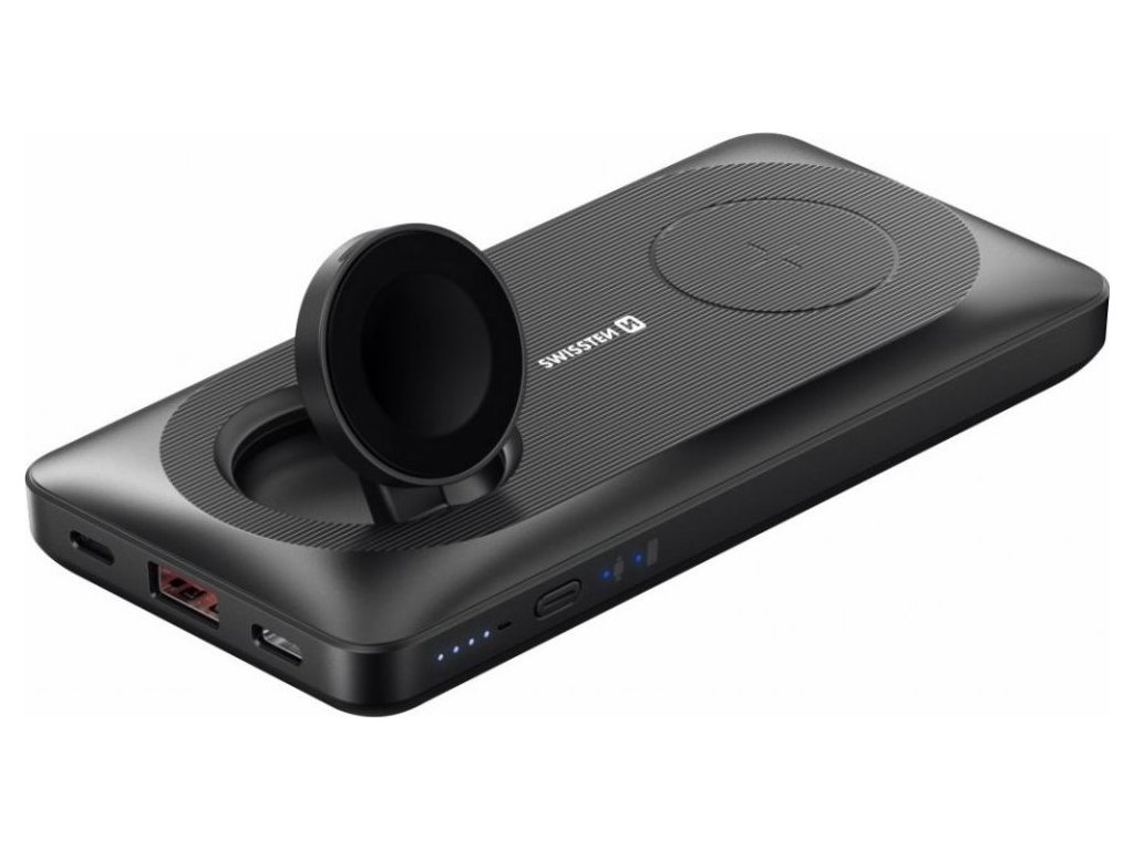 Powerbanka SWISSTEN disponuje kapacitou 10 000 mAh a nabízí dostatečnou zásobárnu energie pro dobití zařízení a prodloužení doby provozu. Powerbanku SWISSTEN ocení všichni uživatelé zařízení Apple. Nabízí výstupy pro Apple Watch a MagSafe, takže hodinky a iPhone můžete nabíjet současně a bez nutnosti kabelu. Samozřejmostí je také podpora drátového nabíjení pomocí další dvojice výstupů.