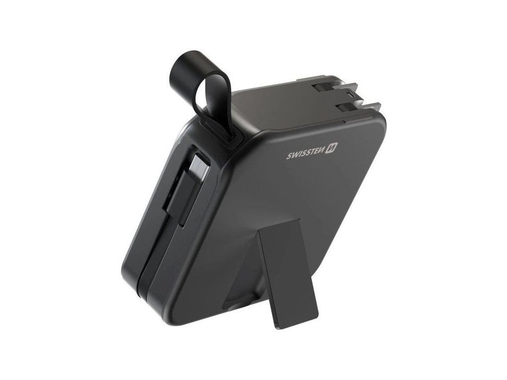 Powerbanka SWISSTEN All-in-one pro nabíjení zařízení kdykoli a kdekoli – doslova. Tento model disponuje vyměnitelnými vidlicemi, díky čemuž je použitelná po celém světě. Ve spojení s 20W nabíjením představuje univerzální řešení pro rychlé napájení na cestách i při každodenním použití. Zabudované nabíjecí konektory a bezdrátové MagSafe nabíjení podporují maximální pohodlí.