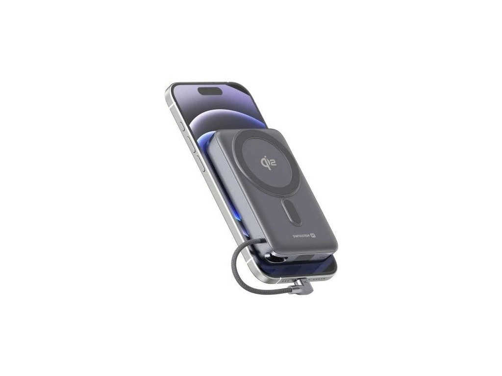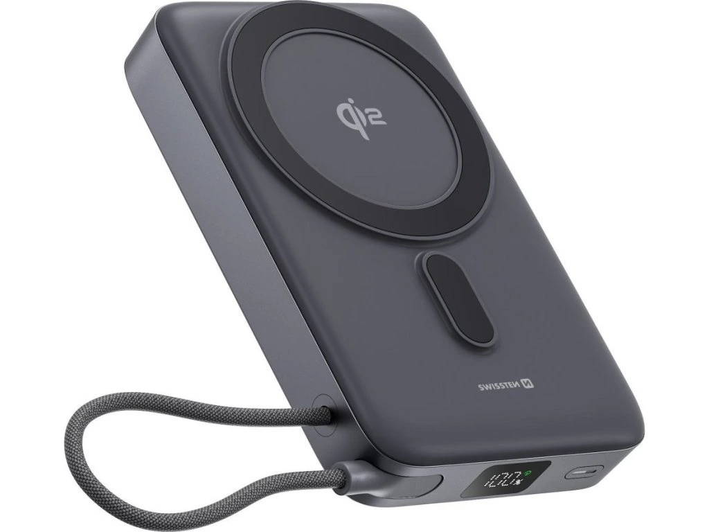 Powerbanka SWISSTEN kombinuje bezdrátové nabíjení Qi2 s magnetickým uchycením MagSafe a kabelové nabíjení přes USB-C s výkonem až 35 W. Kapacita 10000 mAh postačí na několikanásobné nabití smartphonu, přičemž díky podpoře protokolů Power Delivery a PPS zvládne napájet i tablety či notebooky.