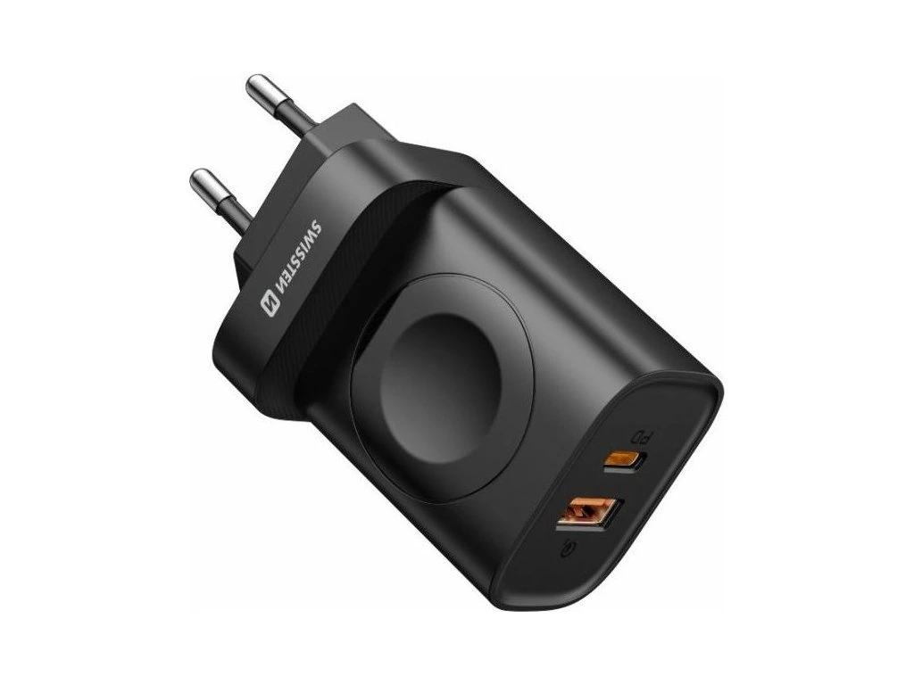 SWISSTEN pro Apple Watch s 1× USB-C + 1× USB 22,5 WKvalitní nabíječka s celkovým výstupem až 22,5 W a podporou technologií Power Delivery (20 W) a Qualcomm Quick Charge (18 W). Nabízí 1× USB-C, 1× USB výstup a bezdrátové nabíjení Apple Watch s výkonem 2,5 W. Při současném použití portů USB a USB-C dosahuje výkonu až 15 W.