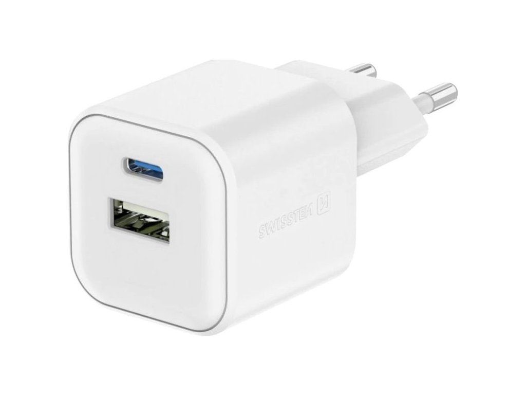 Swissten síťový adaptér gan 1x usb-c 20w pd a 1x usb-a 18w qc bílý