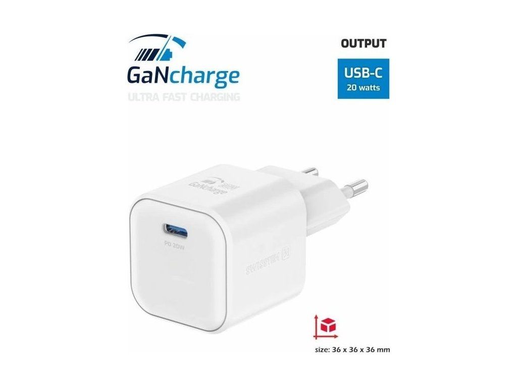 SWISSTEN GaN 1× USB-C PD 20 W + kabel USB-C/LightningUniverzální napájecí adaptér s výkonem až 20 W. Pro nabíjení zařízení je k dispozici konektor USB-C. Adaptér podporuje protokol rychlého nabíjení Power Delivery. Použitá GaN technologie snižuje tvorbu tepla, čímž zvyšuje účinnost nabíječky při zachování kompaktních rozměrů (přibližně 3,6 × 3,6 × 3,6 cm). Samozřejmostí je ochrana proti zkratování, přepětí, přetížení nabíjení a vysoké teplotě.