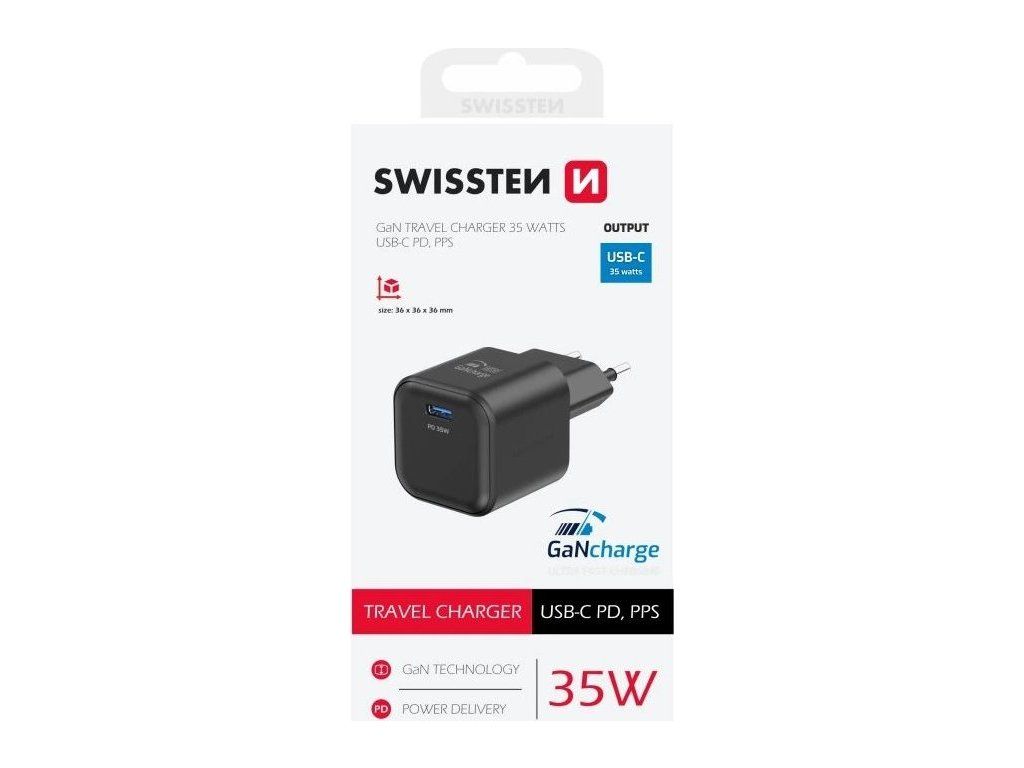 Swissten síťový adaptér gan 1x usb-c 35w power delivery černý