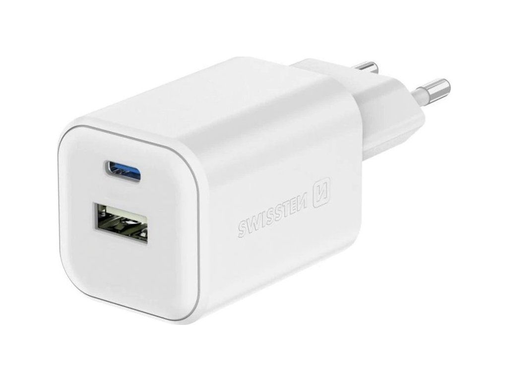 Swissten síťový adaptér gan 1x usb-c 45w pd + 1x usb-a 18w qc bílý