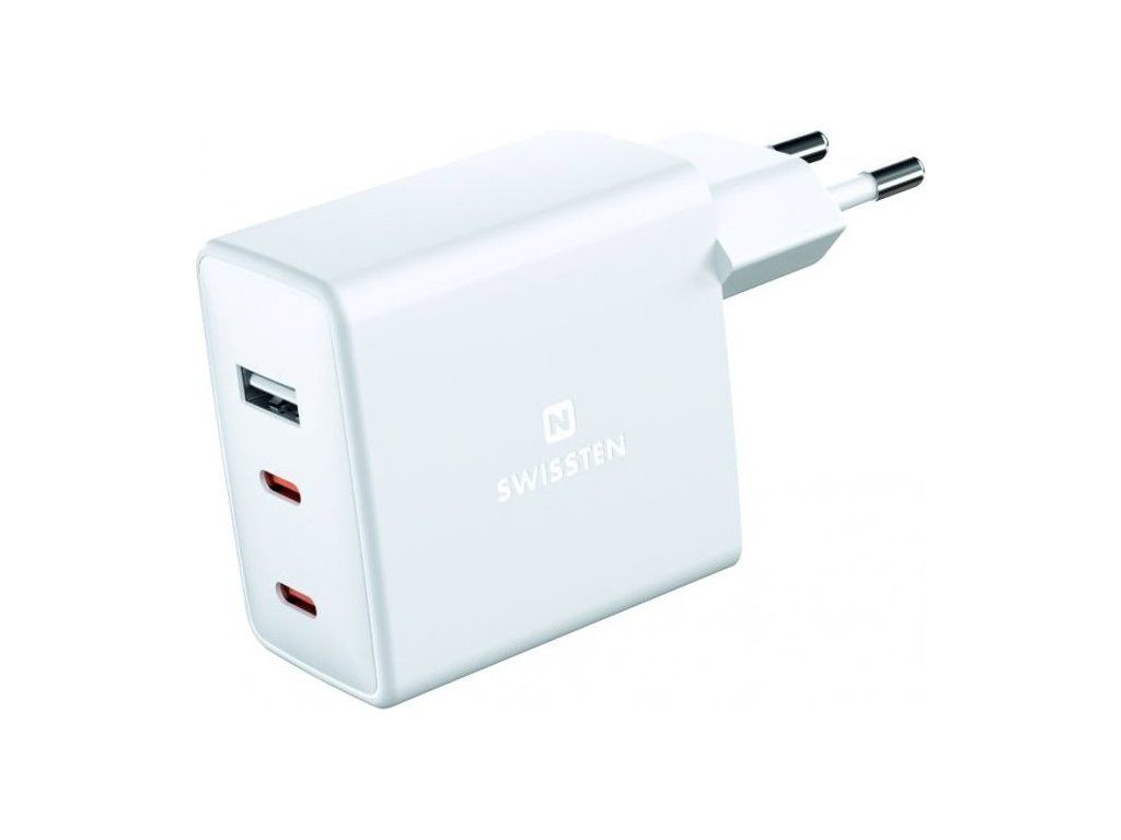 Swissten Síťový Adaptér GaN 2x USB-C + 1x USB 70W PD Bilý