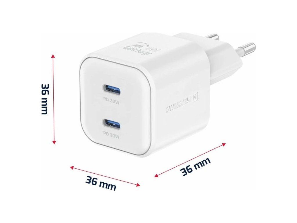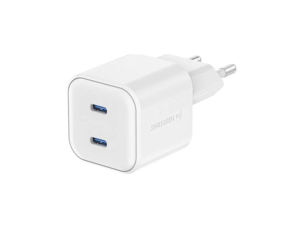 Swissten síťový adaptér gan 2x usb-c 20w power delivery bílý