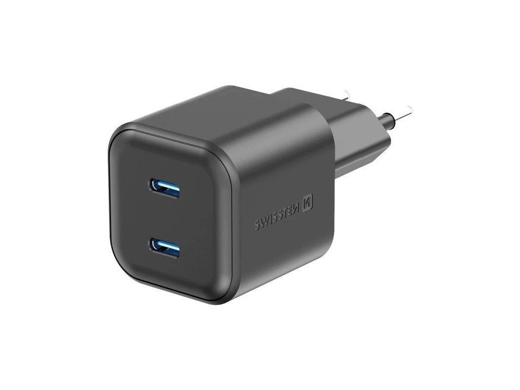 Swissten síťový adaptér gan 2x usb-c 20w power delivery černý