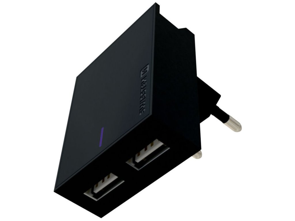 SWISSTEN Smart Ic 2 x USB-A + LightningJedinečný síťový adaptér disponuje dvěma USB porty s celkovým výstupním proudem 3 A. Díky stylovému designu jej lze využít také jako praktický stojánek pro umístění právě nabíjeného smartphonu. Nechybí ani technologie Smart IC, která optimalizuje proces nabíjení.