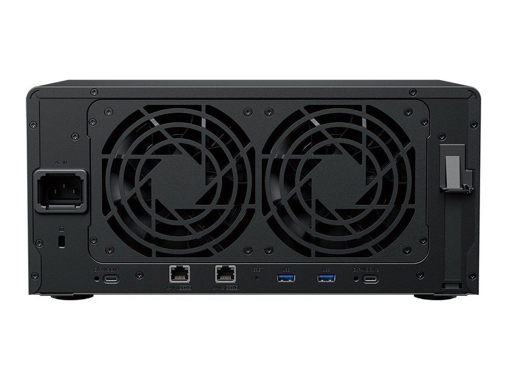 Systém podporuje 8 pozic pro 3,5" SATA HDD a 2,5" SATA SSD s možností volitelného rozšíření na až 18 pozic pomocí dvou rozšiřovacích jednotek DX525. Dva vestavěné 2.5GbE porty s podporou Link Aggregation zajišťují rychlé síťové připojení, zatímco PCIe 3.0 slot umožňuje instalaci 10GbE nebo 25GbE adaptérových karet.