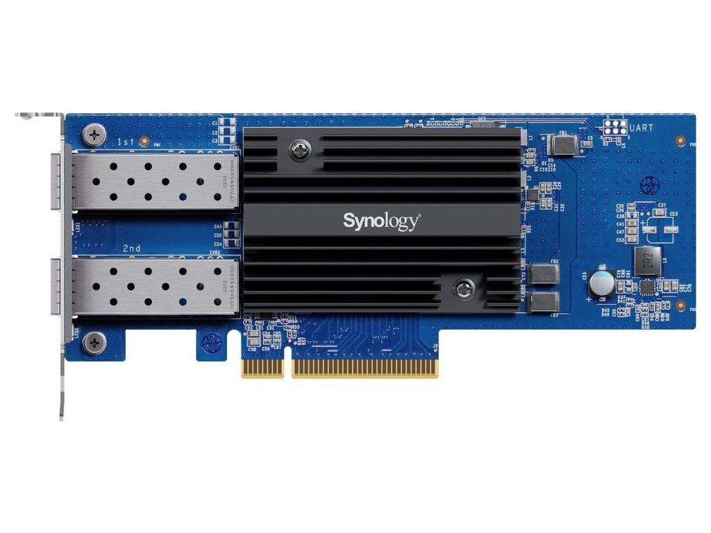 Synology E25G30-F2Vysokorychlostní přídavná karta PCIe 3.0 x8 pro Synology NAS a disková pole. Nabízí dva SFP28 porty s celkovou přenosovou rychlostí až 25 Gb/s. Funkce, jako je Link Aggregation, Jumbo Frame, TSO a snižování zátěže kontrolního součtu TCP/UDP, splňují požadavky na vysoký výpočetní výkon a dělají z E25G30-F2 ideální ekonomické řešení pro podporu síťového prostředí 25 Gb/s.