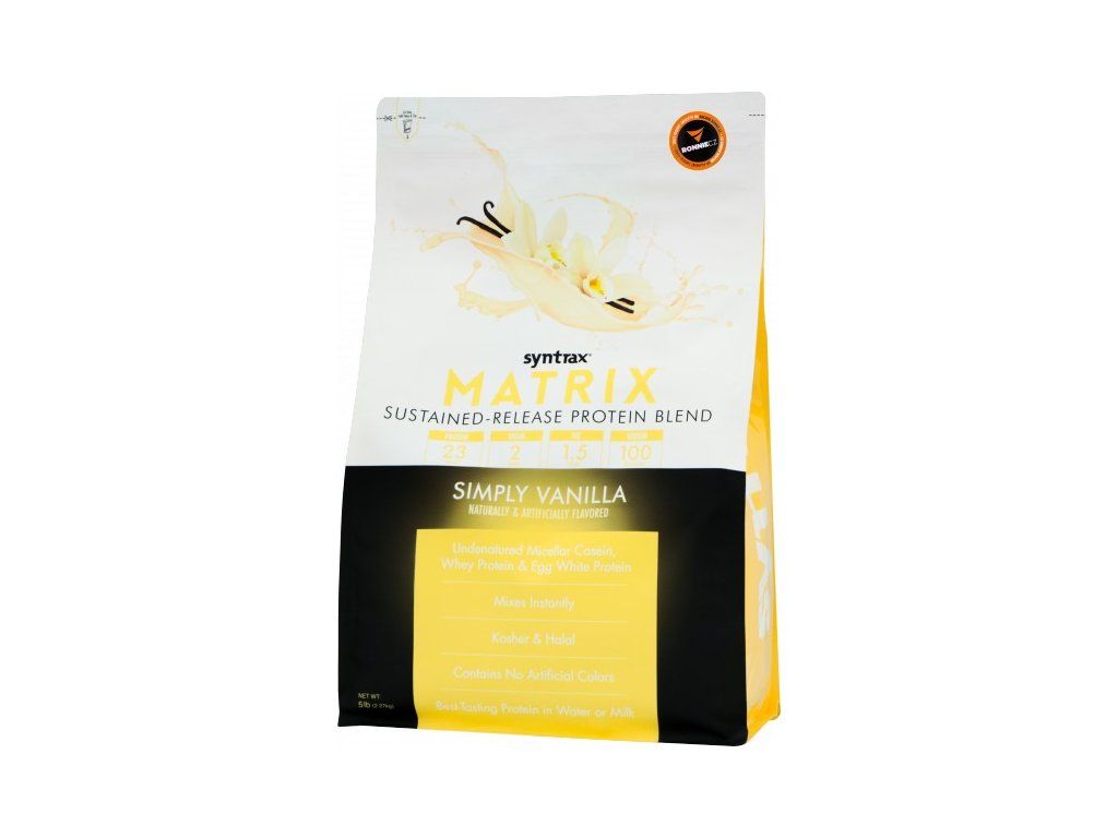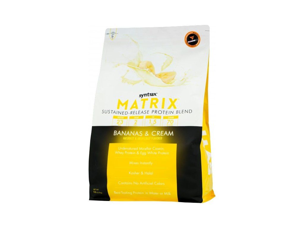 Matrix je oblíbeným instantním proteinovým suplementem s velmi dobrou chutí a skvělou rozpustností, je vícesložkový, nabízí postupné uvolňování pro zásobení Vašich svalů živinami. Obsahuje nejpomaleji trávený nedenaturovaný micelární kasein, nejrychlejší syrovátkový protein a také protein vaječného bílku. Bílkoviny podporují růst a ochranu svalové hmoty. Matrix® používá pouze ty nejkvalitnější ingredience, jako je ultrafiltrovaný syrovátkový protein, ultrafiltrovaný micelární kasein, nativní protein z vaječných bílků a glutaminové peptidy.