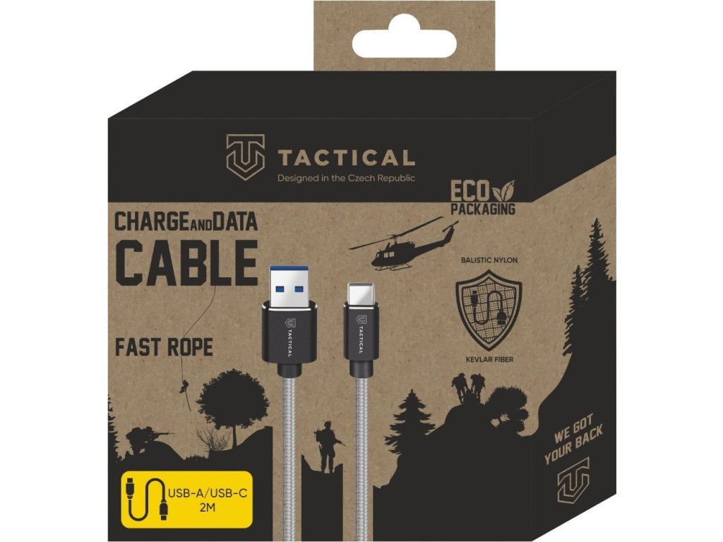 Tactical Fast Rope Aramid Cable USB-A/USB-C 2m Grey
