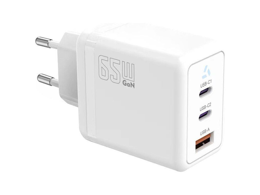 2x USB C + USB A Power Delivery nabíječka bílá, GaN 65W