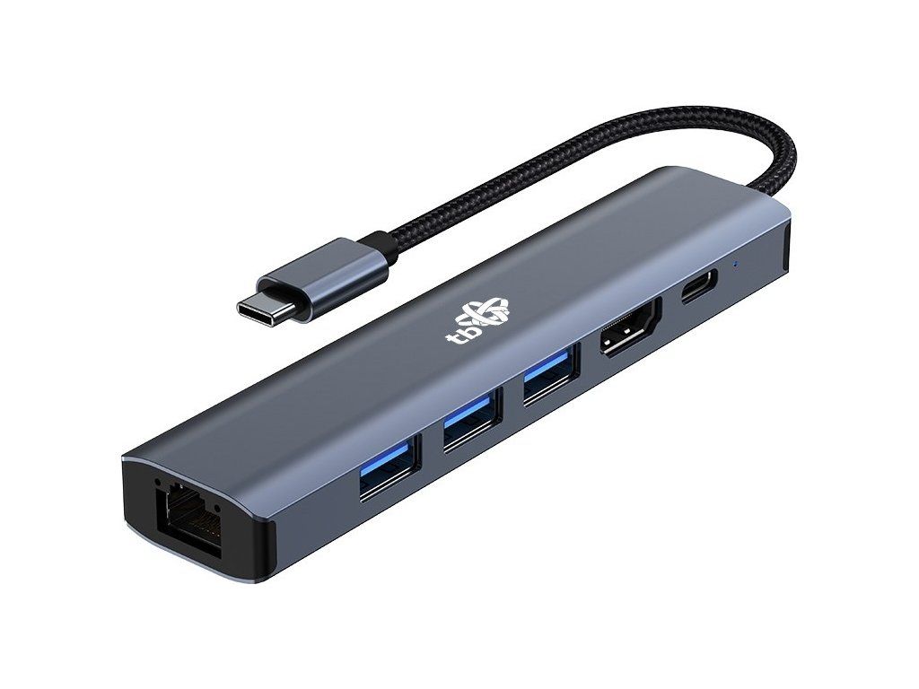 TB Adapter HUB USB C 6in1 - HDMI, USBx3, PD, RJ-45