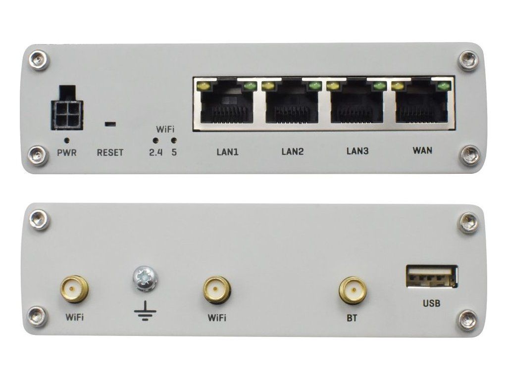 Porty: 4 x RJ-45, 1 x USB 2.0, 2 x RP-SMA (Wi-Fi), 1 x RP-SMA (Bluetooth), 1 x digitální vstup, 1 x digitální výstup (na napájecím konektoru)