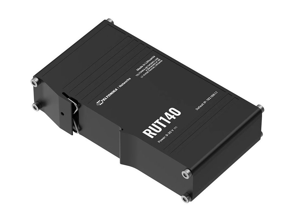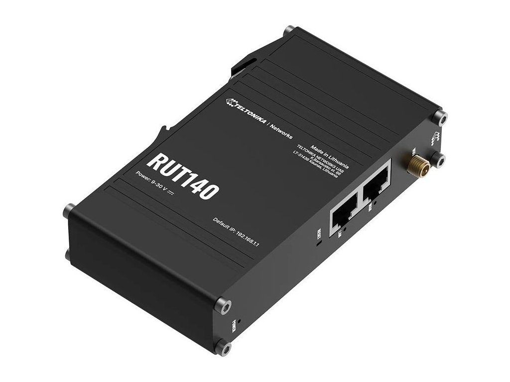 Teltonika RUT140Průmyslový ethernetový směrovač (router), který poskytuje spolehlivé připojení v náročných podmínkách průmyslového odvětví (automatizace, doprava, výroba atd.). Pracuje na operačním systému rutOS.