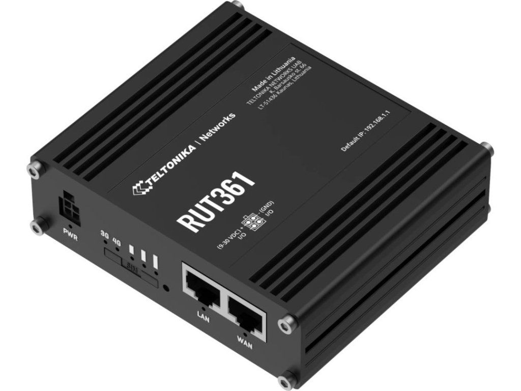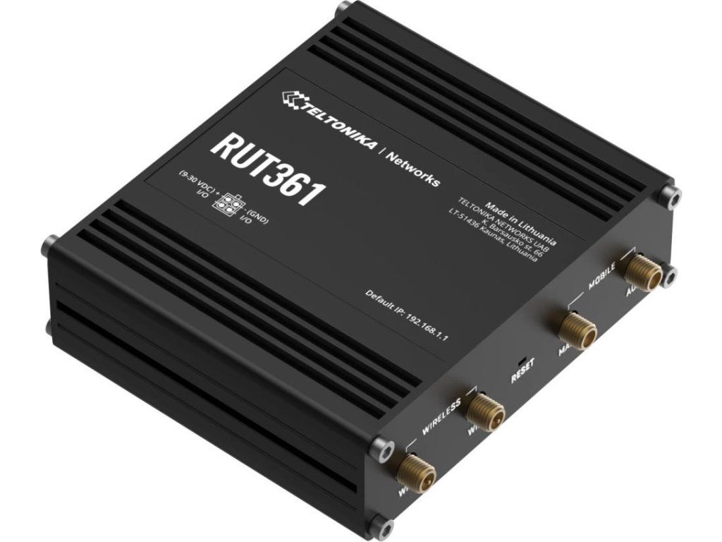 Teltonika RUT361Průmyslový mobilní směrovač (router), který poskytuje spolehlivé připojení v náročných podmínkách průmyslového odvětví (automatizace, doprava, výroba atd.).