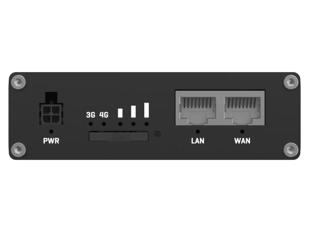 Porty: 2× RJ-45 (1× WAN, 1× LAN), 1× SIM slot (mini SIM, formát 2FF), 2× DI, 2× DO