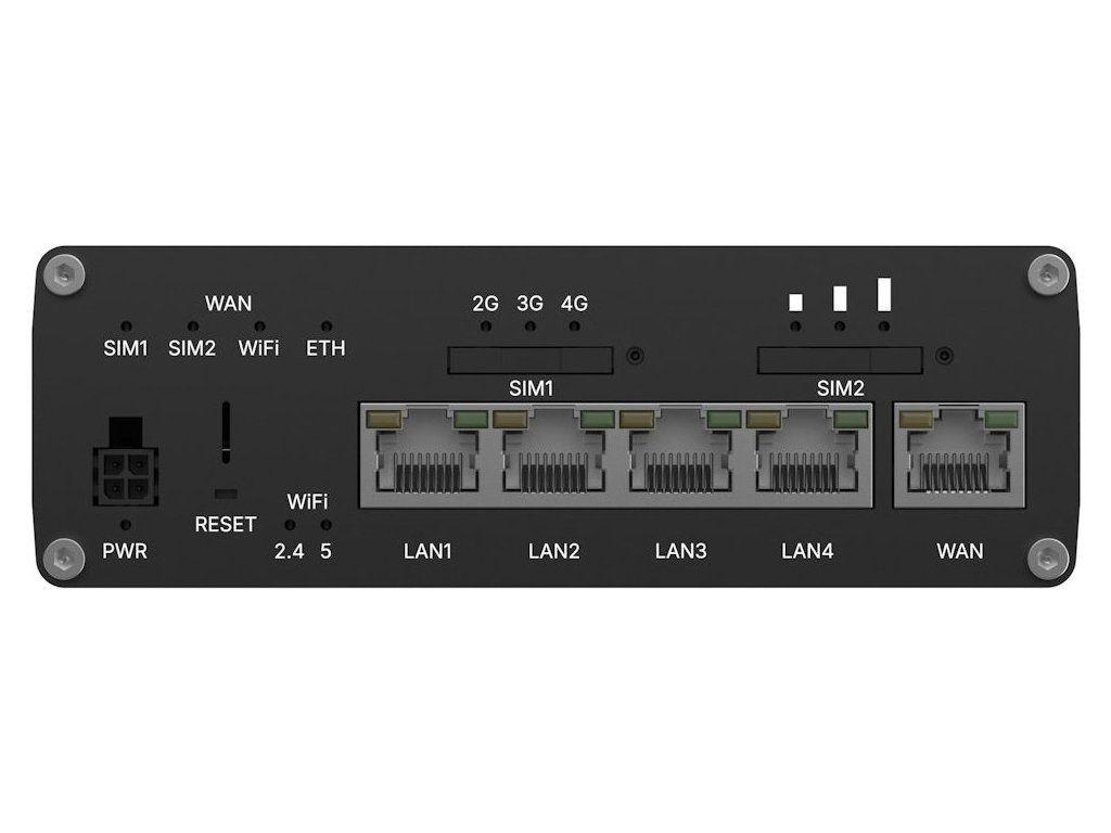 Ethernet: 5× RJ-45 10/100/1000 Mbps (1× WAN konfigurovatelný jako LAN, 4× LAN)