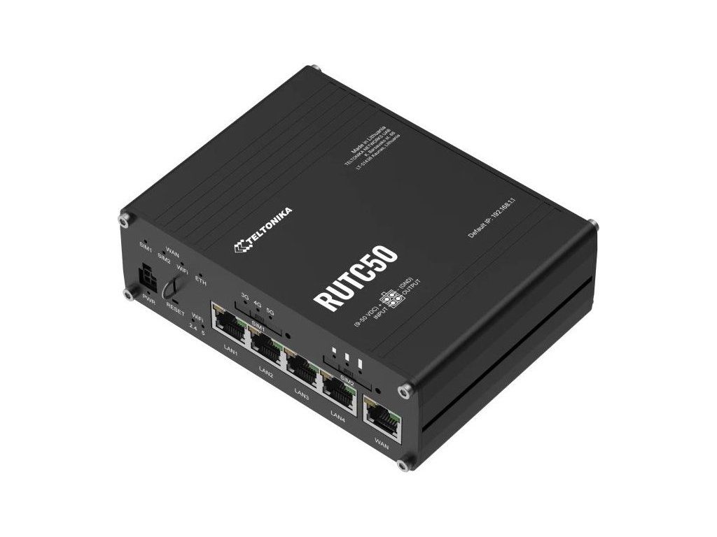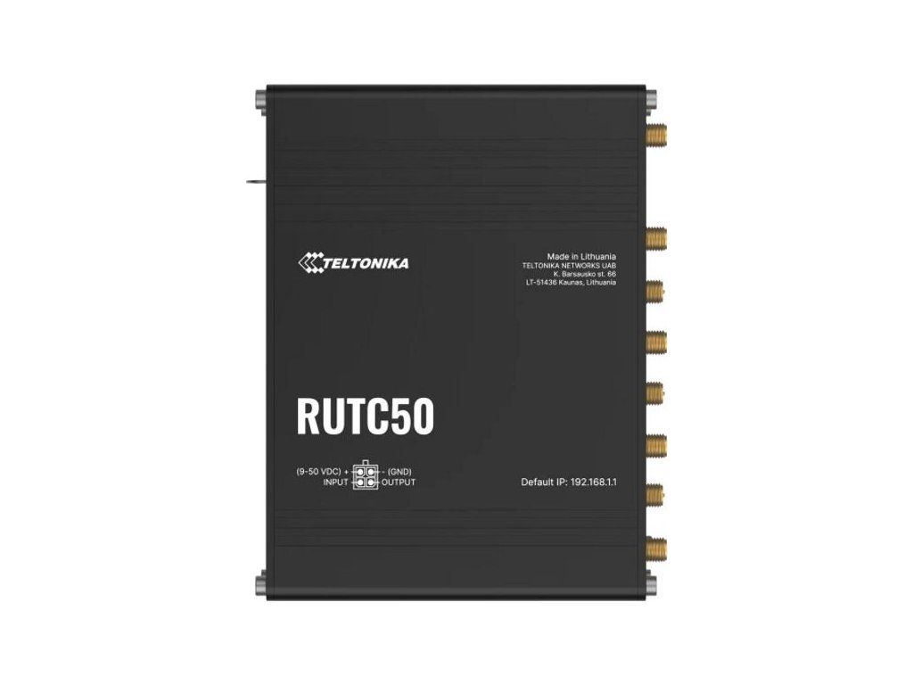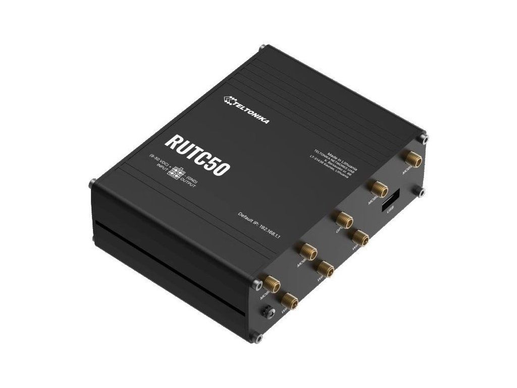 Teltonika RUTC50Průmyslový mobilní router, který poskytuje spolehlivé připojení v náročných podmínkách průmyslového odvětví (automatizace, doprava, výroba atd.).