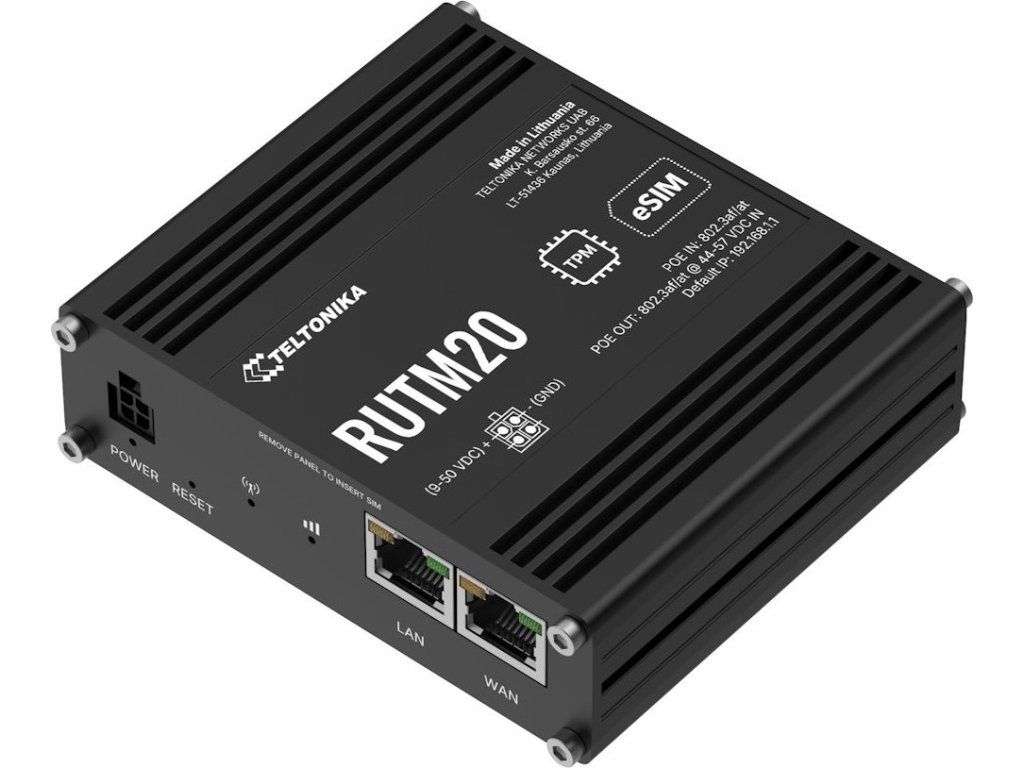 Teltonika RUTM20 průmyslový router 1x LAN, 1x WAN, 1× PoE IN, 1x PoE OUT, 5G Telit global, Dual SIM + eSIM, WiFi 5
