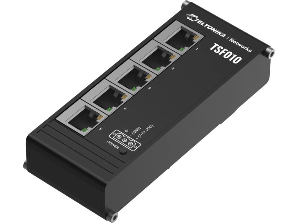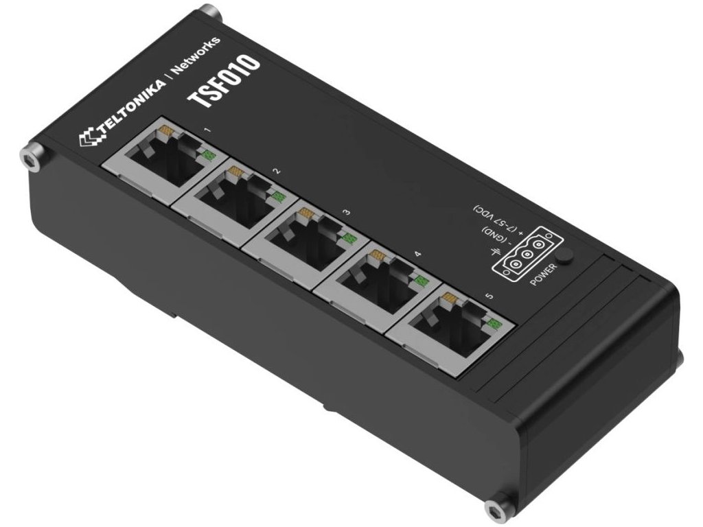 Teltonika TSF010Kompaktní průmyslový switch bez managementu nabízející pět RJ-45 portů (10/100 Mbps). Snadné použití bez nutnosti konfigurace a instalace. Switch má vestavěný držák na DIN lištu.