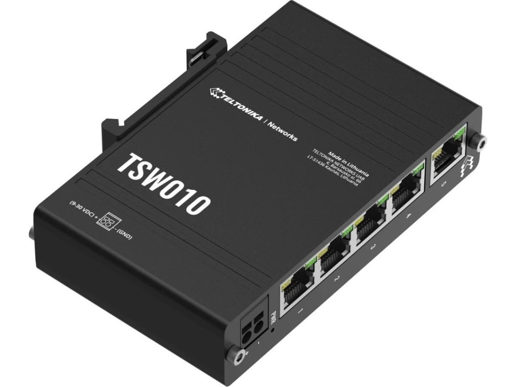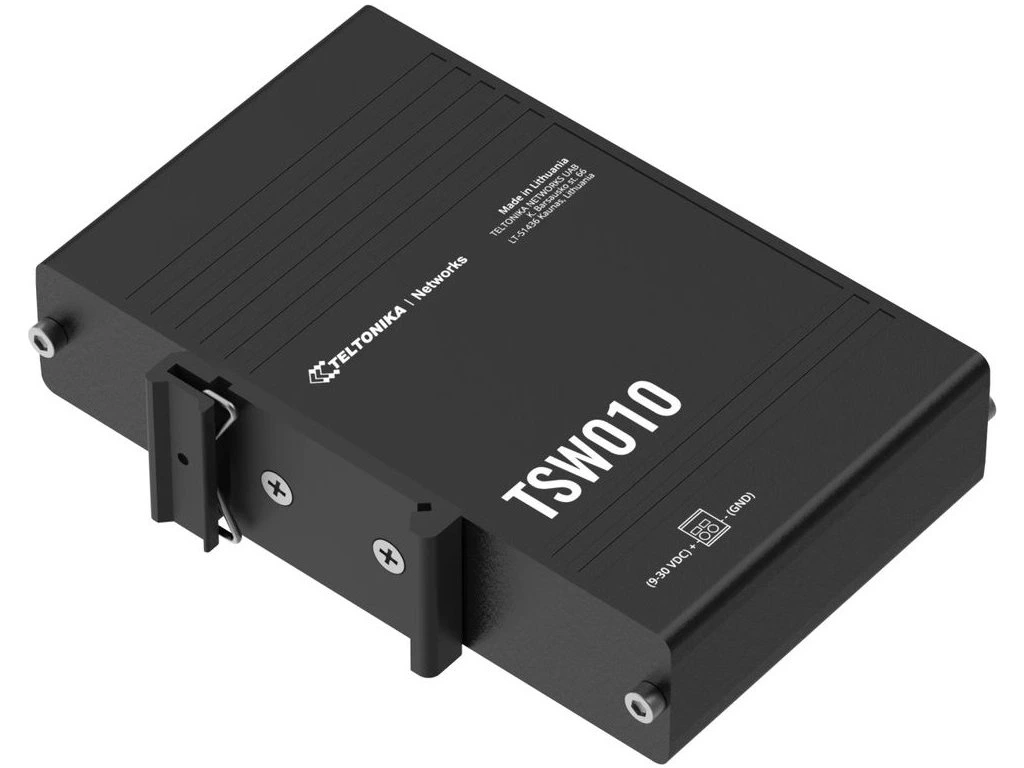 Teltonika TSW010Průmyslový switch bez managementu nabízející pět RJ-45 portů (10/100 Mbps). Snadné použití bez nutnosti konfigurace a instalace. Možnost pasivního PoE napájení. Switch má vestavěný držák na DIN lištu.