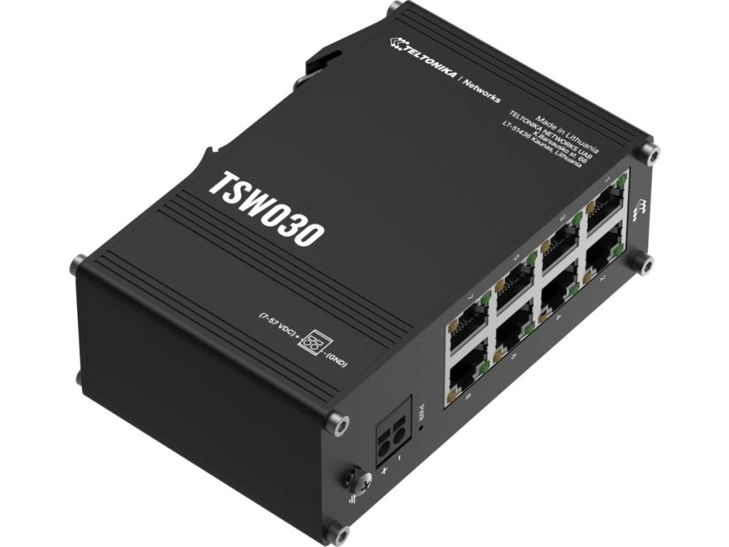 Teltonika TSW030Průmyslový switch bez managementu nabízející osm RJ-45 portů (10/100 Mbps). Snadné použití bez nutnosti konfigurace a instalace. Switch má vestavěný držák na DIN lištu.