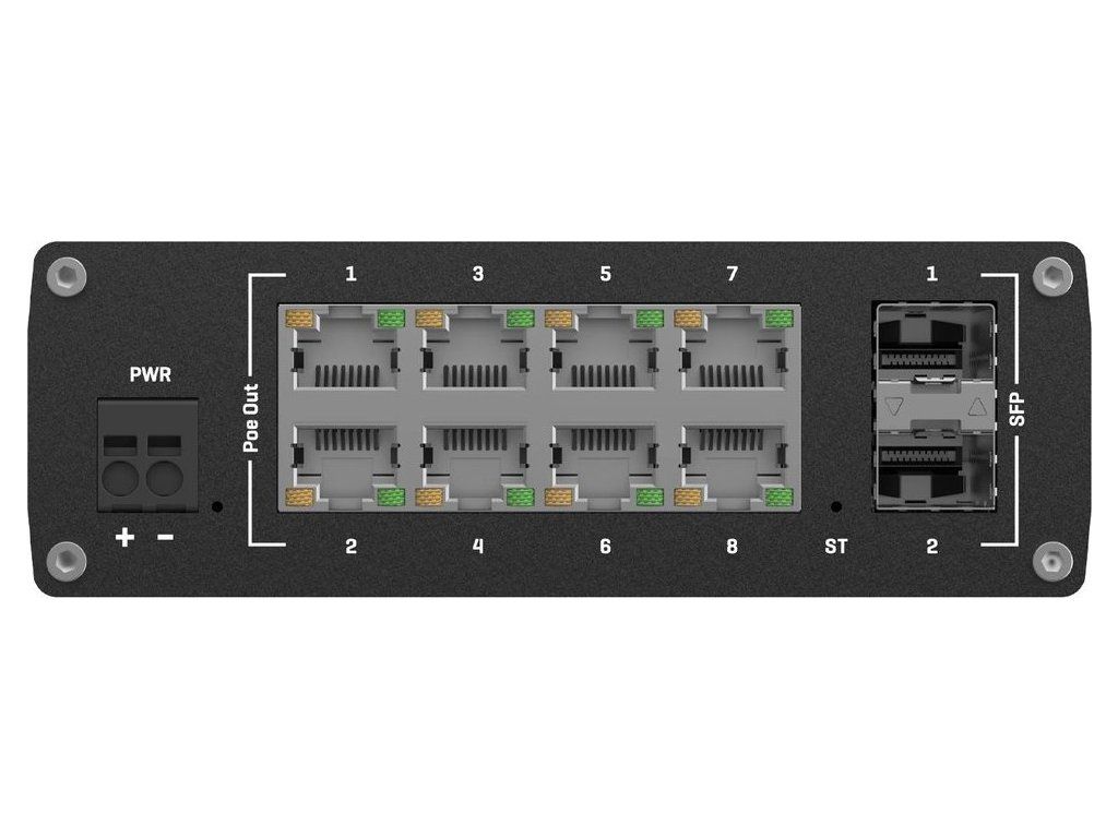 Teltonika TSW202 průmyslový L2 manažovaný switch, 8x PoE+ 10/100/1000, 2x SFP, bez zdroje
